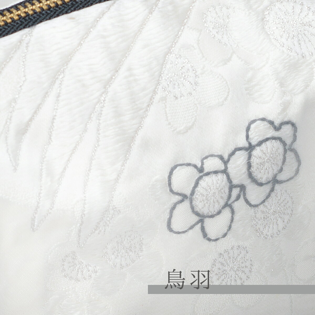 そのため一着の白無垢から取った同じ形のポーチでもすべて柄の出方は違うものになりますので、 まったく同じものが2つとない一点物ならではの味わいがあります!