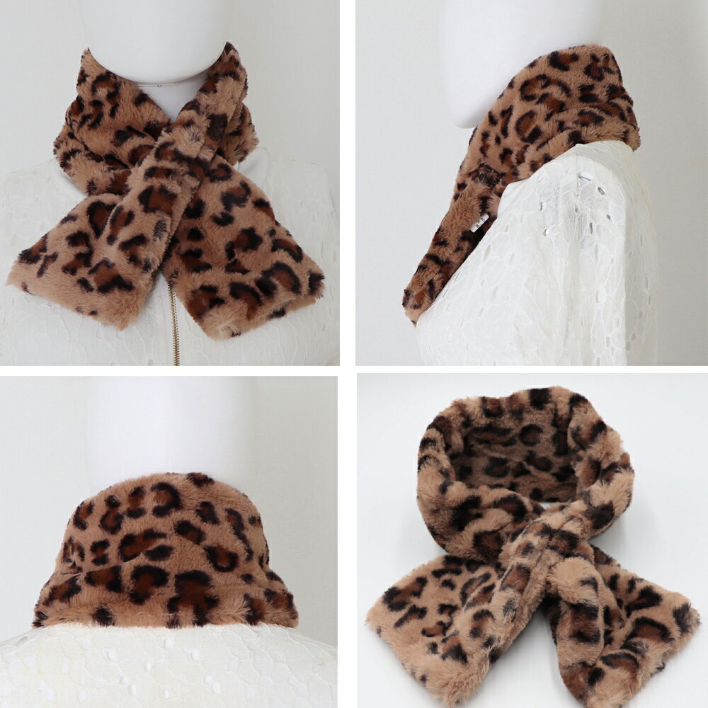 ヒョウ柄マフラー レオパードティペット ふわふわ ファースヌード 襟巻き 差し込みタイプ(T)