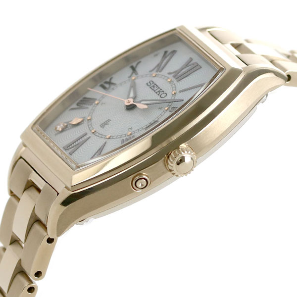 正規品 7年保証キャンペーン 送料無料 セイコー ルキア 19AWメインシリーズ レディダイヤ レディゴールド チタン 日本製 電波ソーラー レディース 腕時計 SSQW046 SEIKO LUKIA Lady Diamond Lady Gold アナログ トノー ホワイトシェル×シャンパンゴールド ◆ルキアは綾瀬はるかさんがイメージキャラクターのブランドです。