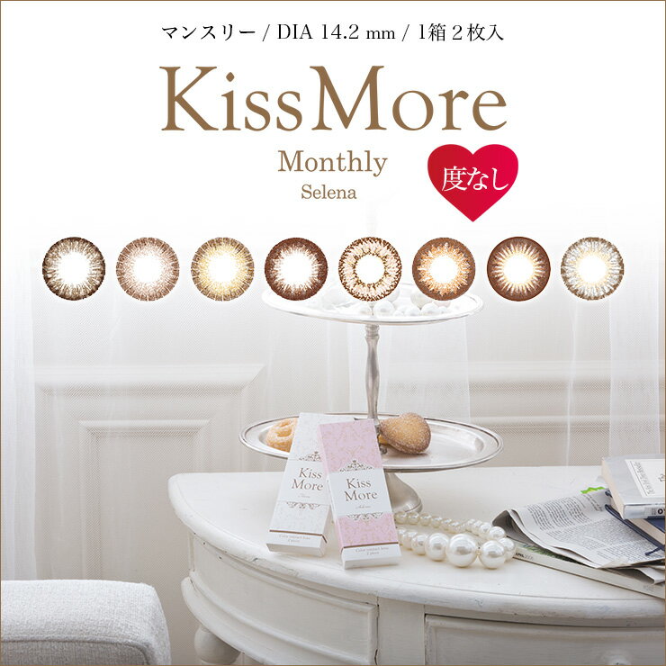 送料0円★ 【300円オフ】 カラコン あす楽 キスモア セレナ 【1箱2枚入】 度なし 14.2mm KissMore Selena ナチュラル 大人かわいい 1ヶ月 1month マンスリー コンタクト